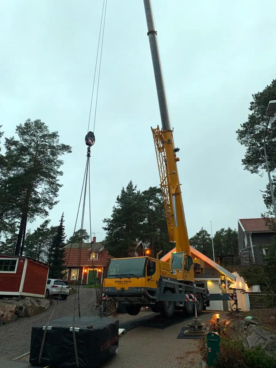Med modern mobilkran och erfaren förare erbjuder vi säker hjälp med alla slags lyft.